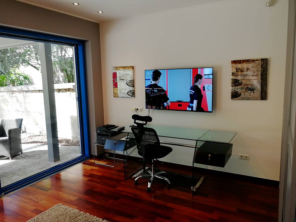 Cette suite comporte une chambre à coucher avec lit double ou séparés, salle de bain avec balnéo, WC et douche à hammam séparé. Un dressing particulièrement spacieux jouxte la salle de bain. Une cuisine totalement équipée avec accès direct au jardin garantit toute indépendance. Au bureau, donnant sur le jardin, un lit escamotable est installé permettant de recevoir deux convives supplémentaires. Le bureau est équipé d’une imprimante et de tous les accès internet etc. Un WC séparé pour invités est installé à l’entrée du hall de la suite.