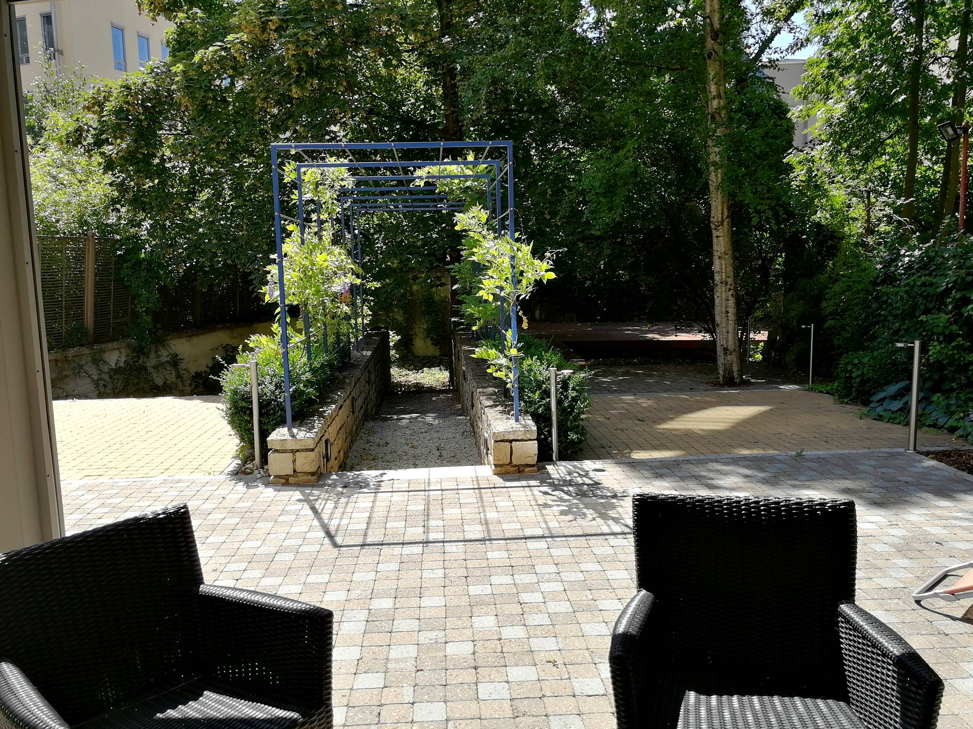 La suite de 140m2 de plain-pied, décorée avec élégance, est située au rez-de-chaussée de l’hôtel donnant accès sur de magnifiques terrasses protégées par des pergolas bioclimatiques et un jardin arboré de plusieurs ares. Son aménagement permet la séparation des parties privatives de celles dédiées à la réception.